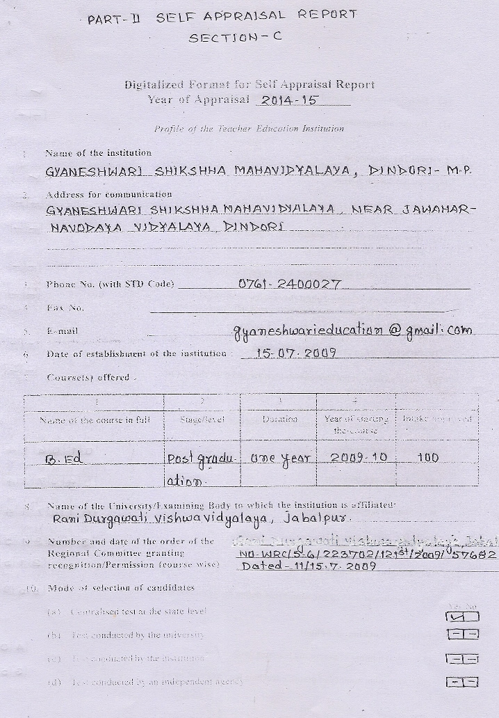 PART II : Self - Appraisal Report Section -C